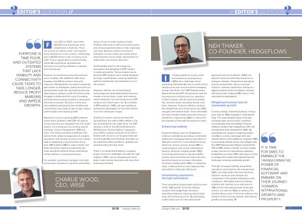 Time-consuming manual tasks and processes hinder SME growth . Financial software solutions like HedgeFlows introduce automation features , reducing manual data entry and minimising errors . By automating routine tasks such as international bulk payments and reconciliations , SMEs can allocate resources efficiently and focus on strategic initiatives . Streamlined operations improve productivity , reduce costs and enhance customer satisfaction . Acting as a digital assistant , financial software elevates efficiency levels , helping SMEs thrive in the international marketplace .