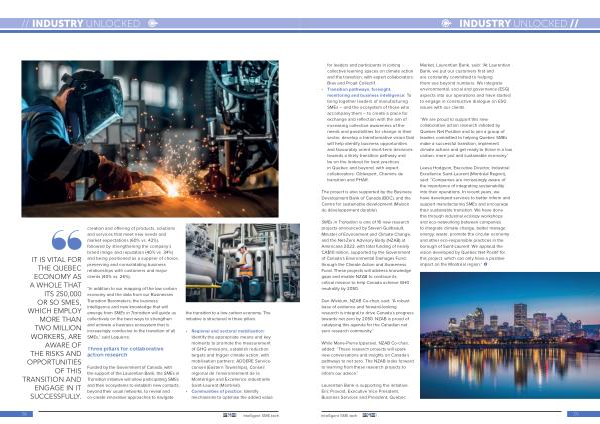 Funded by the Government of Canada , with the support of the Laurentian Bank , the SMEs in Transition initiative will allow participating SMEs and their ecosystems to establish new contacts , beyond their usual networks , to reveal and co-create innovative approaches to navigate the transition to a low carbon economy . The initiative is structured in three pillars :