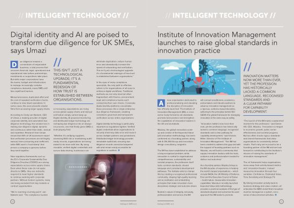 is increasing, expectations are rising across global supply chains and manual verification simply cannot keep up. Digital identity, AI-powered monitoring and distributed ledger technology are reshaping due diligence into an alwayson process, one that finally gives SMEs a level playing field.