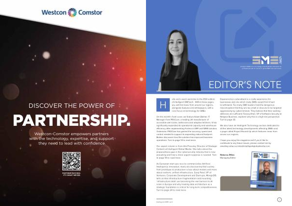 H ello and a warm welcome to the 65th edition of Intelligent SME. tech. Within these pages, you will find news from around our regions, alongside features and whitepapers, with a core focus on technology for SMEs.